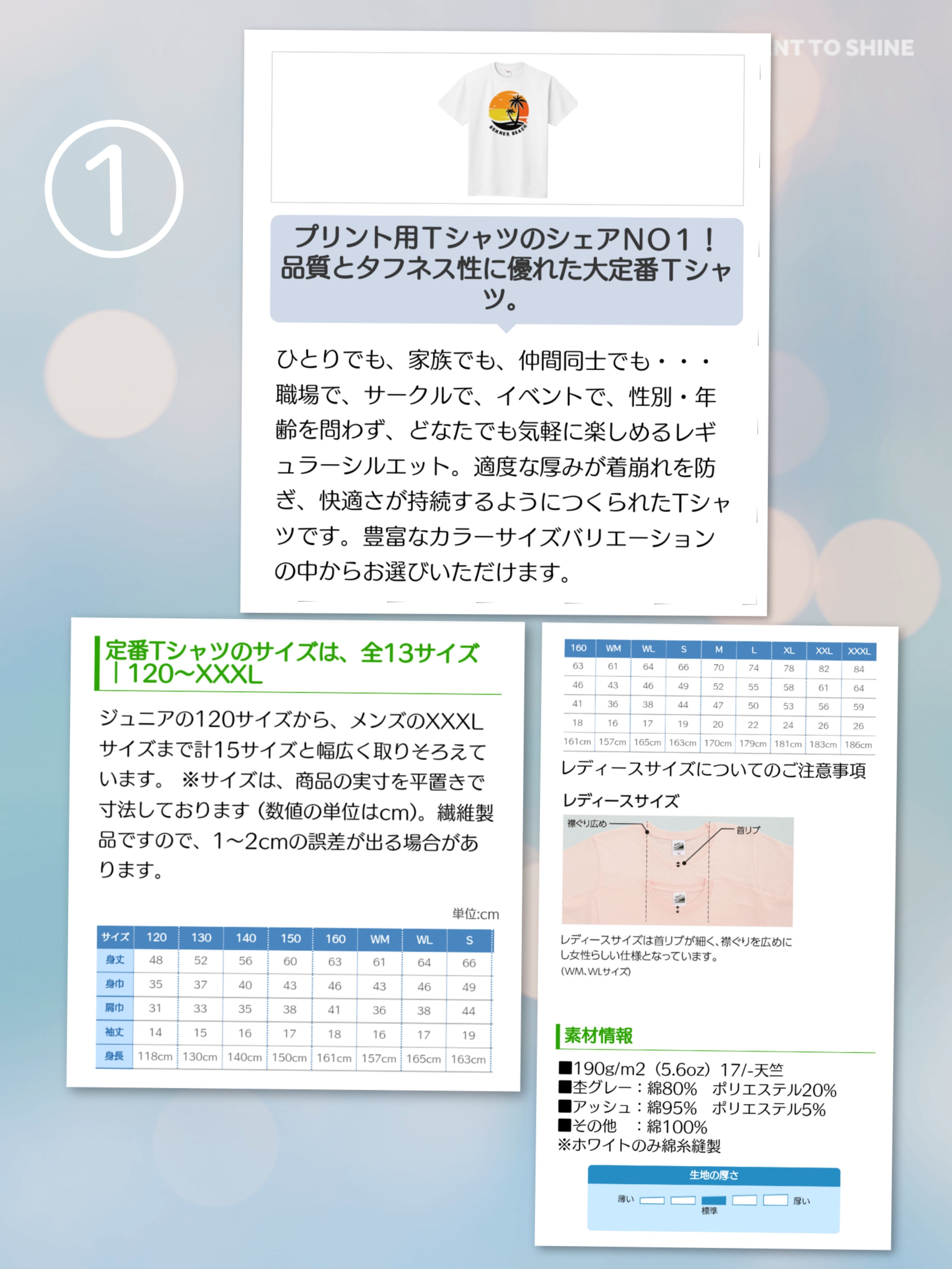 備考欄にてご希望のTシャツの種類の番号をお願いいたします。
