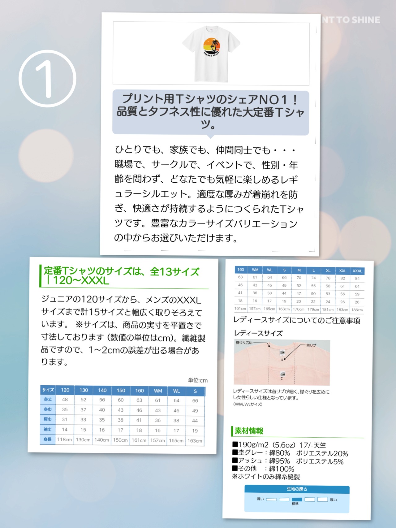備考欄にてご希望のTシャツの種類の番号をお願いいたします。
